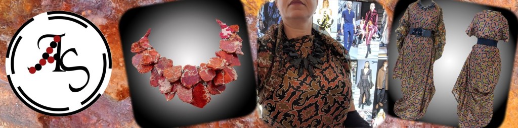 To complement the dresses, I design statement necklaces from an eclectic mix of natural materials – gemstones, glass, precious metals, and dried flowers – capturing the essence of my creative journey. These materials serve as my palette, allowing me to weave intricate designs that reflect the richness and complexity of nature itself. Yet, my creative process goes beyond simply selecting materials. I strive to create pieces that exude a distinctive attitude. At times, this involves revealing the poetic beauty of petrified nature inherent in the gemstones – a mesmerizing glimpse into Earth’s rich history encapsulated within a single stone. Other times, it entails incorporating unexpected details into the design, disrupting the visual rhythm and inviting the viewer to perceive the piece in a new light. To bring my vision to life, I employ a diverse range of techniques, traversing through time and tradition, drawing inspiration from ancient goldsmithing practices to cutting-edge innovations like microwave kilns.