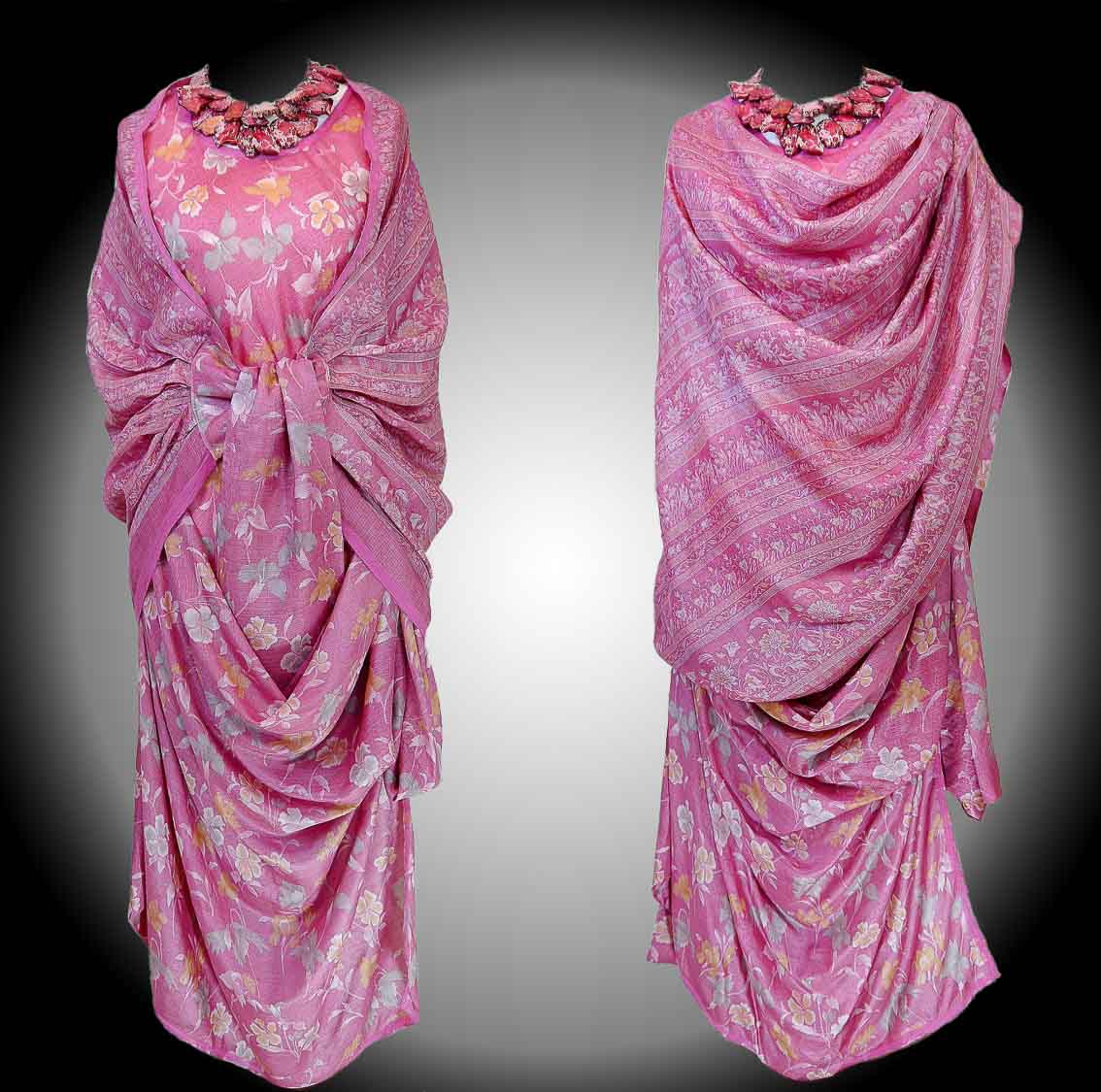 This collection of one-of-a-kind ethereal dresses embodies a captivating tale of springtime renascence. Crafted from hand-made sari silks, each garment is a tribute to the natural elegance inherent in silk fabric. Drawing inspiration from the soft textures and lively patterns of these materials, the designs evoke a sense of whimsy and vitality. The silks serve as a canvas for creativity, inspiring flowing silhouettes and dynamic compositions that dance gracefully with every movement. This collection have been created with respect to zero waste and sustainable design practices.