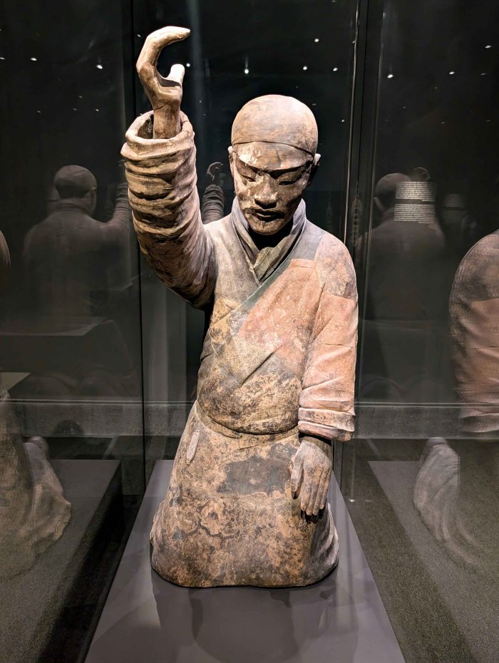 Adjacent to this pit lies the Pit of the Entertainers, which offers a rare glimpse into refined leisure at the Qin imperial court. This pit contained terracotta figures of acrobats, dancers, and musicians. In contrast to the rigid, military poses of the terracotta warriors, the acrobats are animated and captured in the midst of performance. A group of terracotta musicians is depicted playing various instruments alongside bronze representations of waterfowl. In designing this setting, considerable attention was paid to recreating a convincing aquatic environment. Within the long, tunnel-like trench, bronze swans, wild geese, and cranes were placed on narrow wooden planks along both sides, with their heads turned toward the center, thereby simulating the banks of a body of water. Excavations have recovered a total of 20 swans, 20 wild geese, and 6 cranes from the trench. No two birds are exactly alike, subtle variations in posture, proportion, and surface detail create a dynamic and lifelike scene. This attention to individualization, even in the representation of animals, underscores the Qin artisans’ exceptional skill in bronze casting and reflects a broader belief that the pleasures and diversions of imperial life should continue unbroken in the afterlife.
