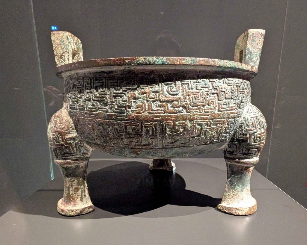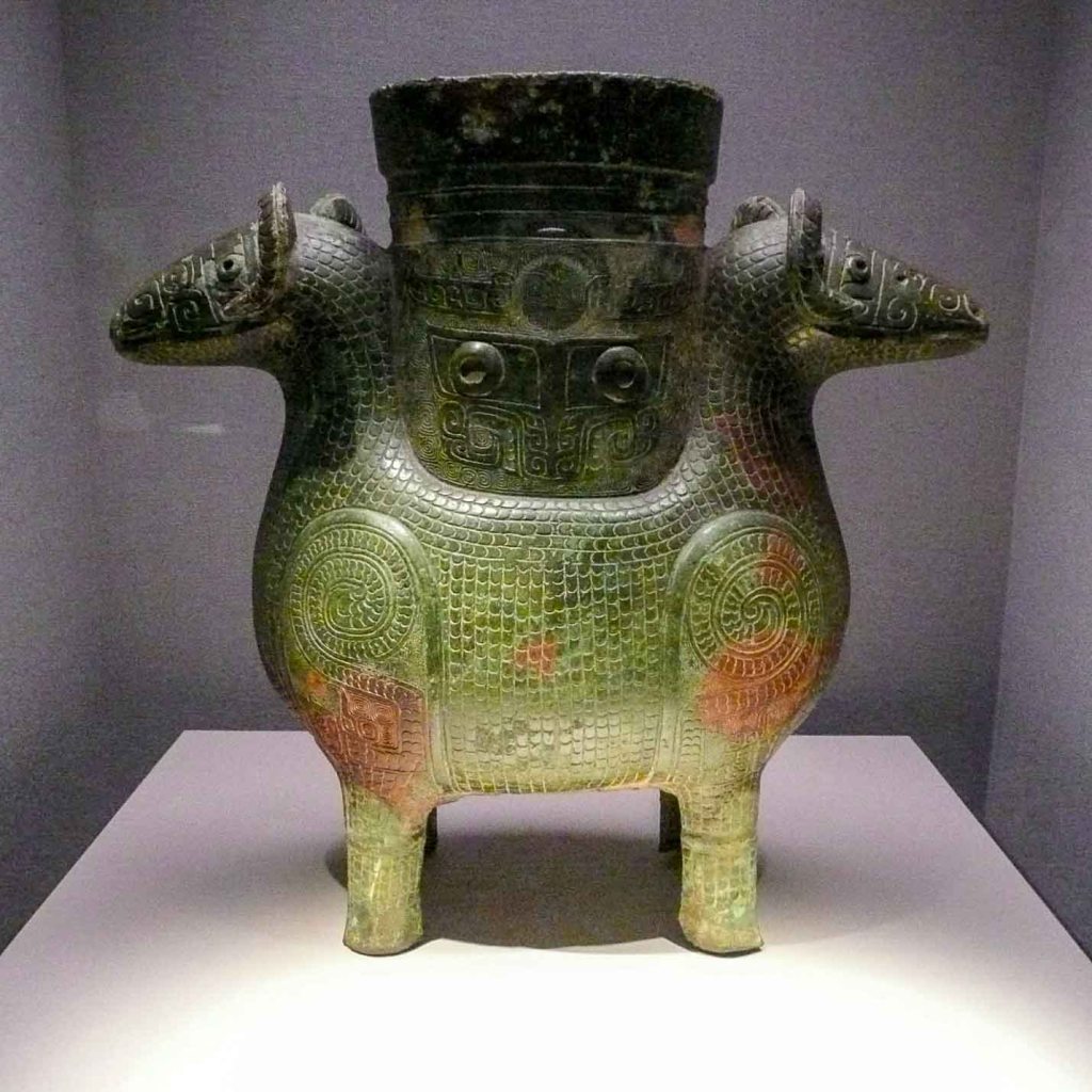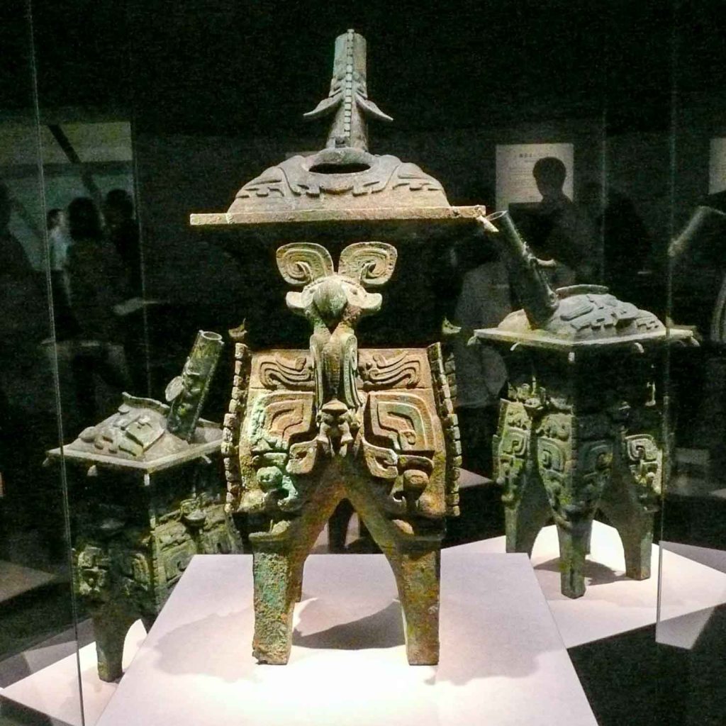 Bronze technology appeared in China around 1650 BC, marking a major technological and cultural development. This highly advanced metallurgical technology, which likely arrived from the western regions of Eurasia, was rapidly adapted and perfected by Chinese craftsmen. Bronze soon became one of the most important materials, particularly for the production of ritual objects, reflecting its association with durability, prestige, and spiritual power. The ownership and use of bronze vessels signified rank and honor, a symbolic association that has continued in Chinese culture to the present day. During the 1st millennium BC, dingvessels emerged as the most fundamental and symbolically significant type of bronze ritual vessel. They were primarily used to present food offerings during ancestral sacrifices and state rituals. Their heavy form and imposing appearance conveyed ideas of solidity, permanence, and stability, symbolizing both the authority of the ruler and the enduring strength of the state. As such, ding vessels were regarded as royal regalia and closely associated with legitimate political power. Alongside ding vessels, other ritual bronzes developed rich symbolic associations. Mountain-shaped incense burners appeared as ritual objects designed to reflect cosmological beliefs. Early examples were often chalice-shaped, with sacrificial smoke rising through openwork lids, visually representing sacred mountains and the ascent of prayers and offerings from the human world to the divine realm. The Zhou period is widely regarded as the zenith of Chinese bronze craftsmanship. Artisans achieved extraordinary technical mastery in casting, surface decoration, and symbolic design, producing vessels that combined artistic refinement with profound ritual and political meaning. During the Western Zhou, large numbers of bronze objects were buried with elite individuals, reflecting their social status and political authority. Placing these vessels in tombs allowed the deceased to continue performing ritual and ancestral ceremonies in the afterlife.