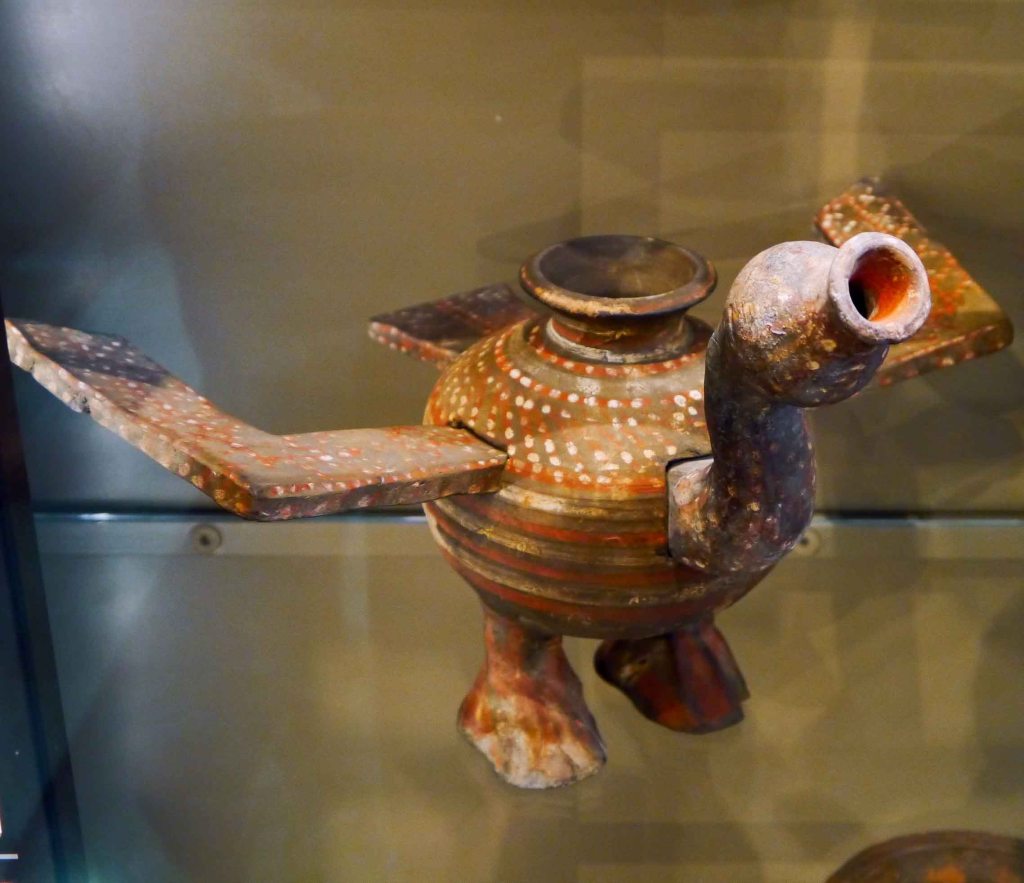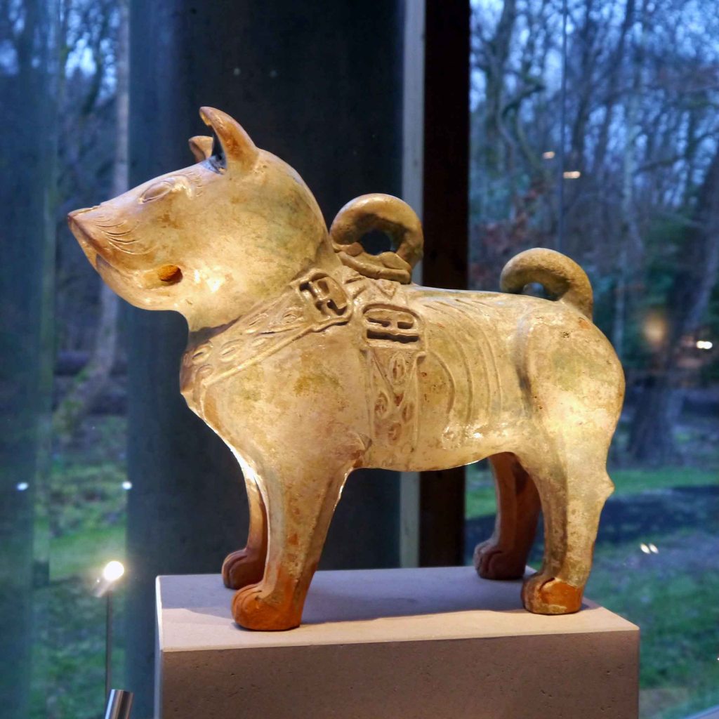 In ancient China, pottery played an essential role in daily life from the Neolithic period onward. Made from inexpensive yet high-quality clay readily available across the region, pottery was widely accessible and adaptable to local needs. Vessels were often fired at high temperatures, resulting in durable stoneware suited for everyday use. Early pottery was primarily utilitarian, serving functions such as cooking, storage, and food serving. Despite their practical purpose, these vessels frequently featured geometric patterns, painted designs, and symbolic motifs, reflecting aesthetic preferences as well as social identity and spiritual beliefs. As Chinese societies became more complex and socially stratified, pottery took on increasingly specialized and symbolic roles. Beyond domestic use, ceramic objects were employed in elite, ceremonial, and funerary contexts, with forms and decorations becoming more intricate. Initially, ceramic grave goods were placed in tombs as substitutes for expensive bronze vessels, allowing families of modest means to fulfill ritual obligations. Over time, pottery assumed a more expressive funerary function: stoneware models of everyday objects –tools, utensils, and furniture – were included to ensure that the deceased would be surrounded in the afterlife by the familiar comforts of their earthly lives. By the late Warring States period, pottery production had become highly specialized and sophisticated, both technically and artistically. Tombs were furnished with ceramic models of buildings, farmyards, chariots, animals, and servants, creating miniature representations of daily life. By the Eastern Zhou period, bronzes were increasingly passed down within families rather than buried, making ceramic substitutes more common.