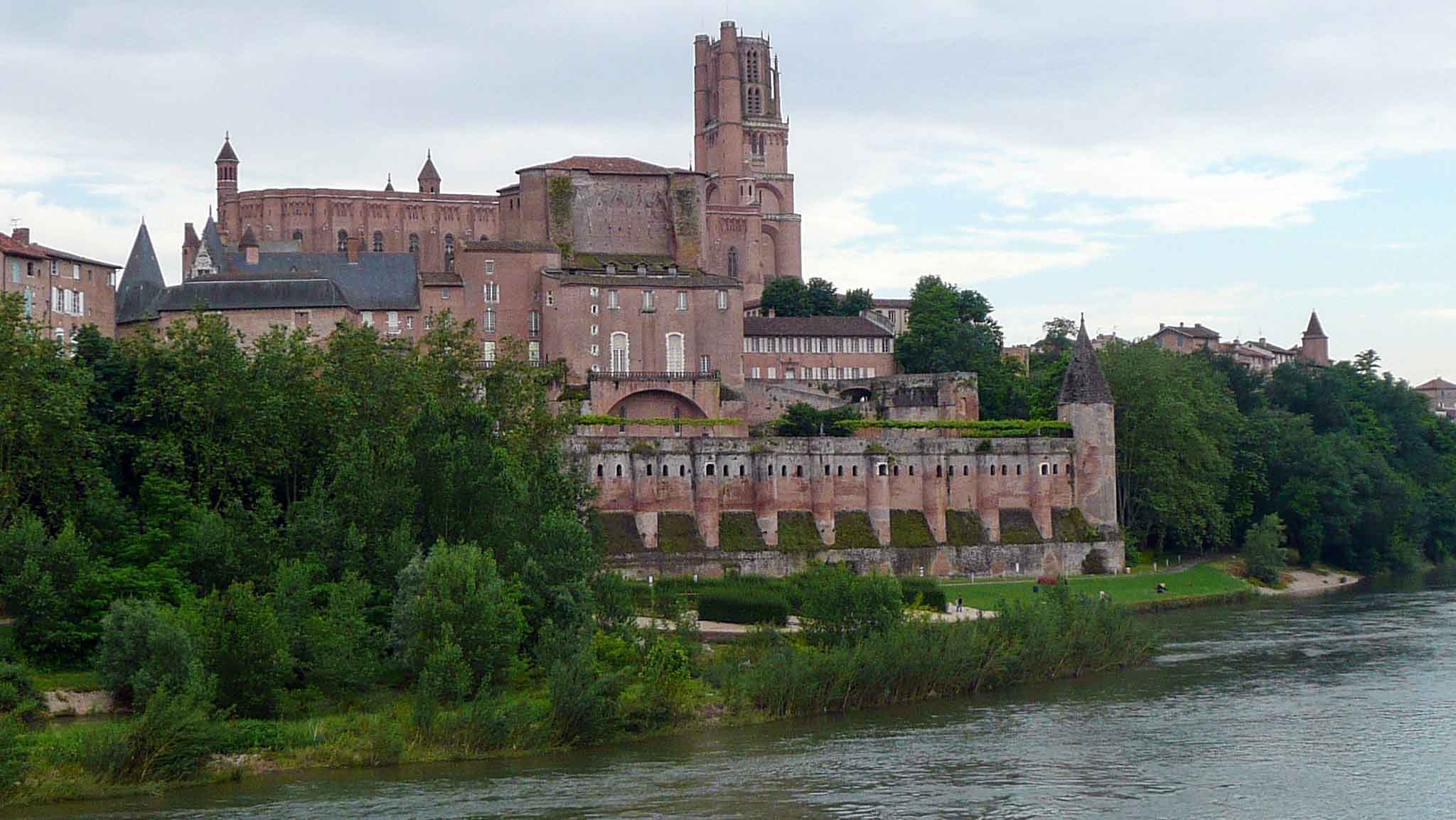 After the Albigensian Crusade, launched against the Cathars, a new Christian religious movement, Bishop Bernard de Castanet (1240-1317) commissioned the construction of the Cathédrale Ste-Cécile [Cathedral of St Cecilia] and the Palais Épiscopal de la Berbie [Episcopal Palace of Berbie]. The bishop’s intension in constructing the grand castle-like complex was to assert the authority of the Christian church and remind the surviving Cathars, as well as future heretics, of its power. The complex exemplifies the distinctive Languedoc-style red brick architecture.
