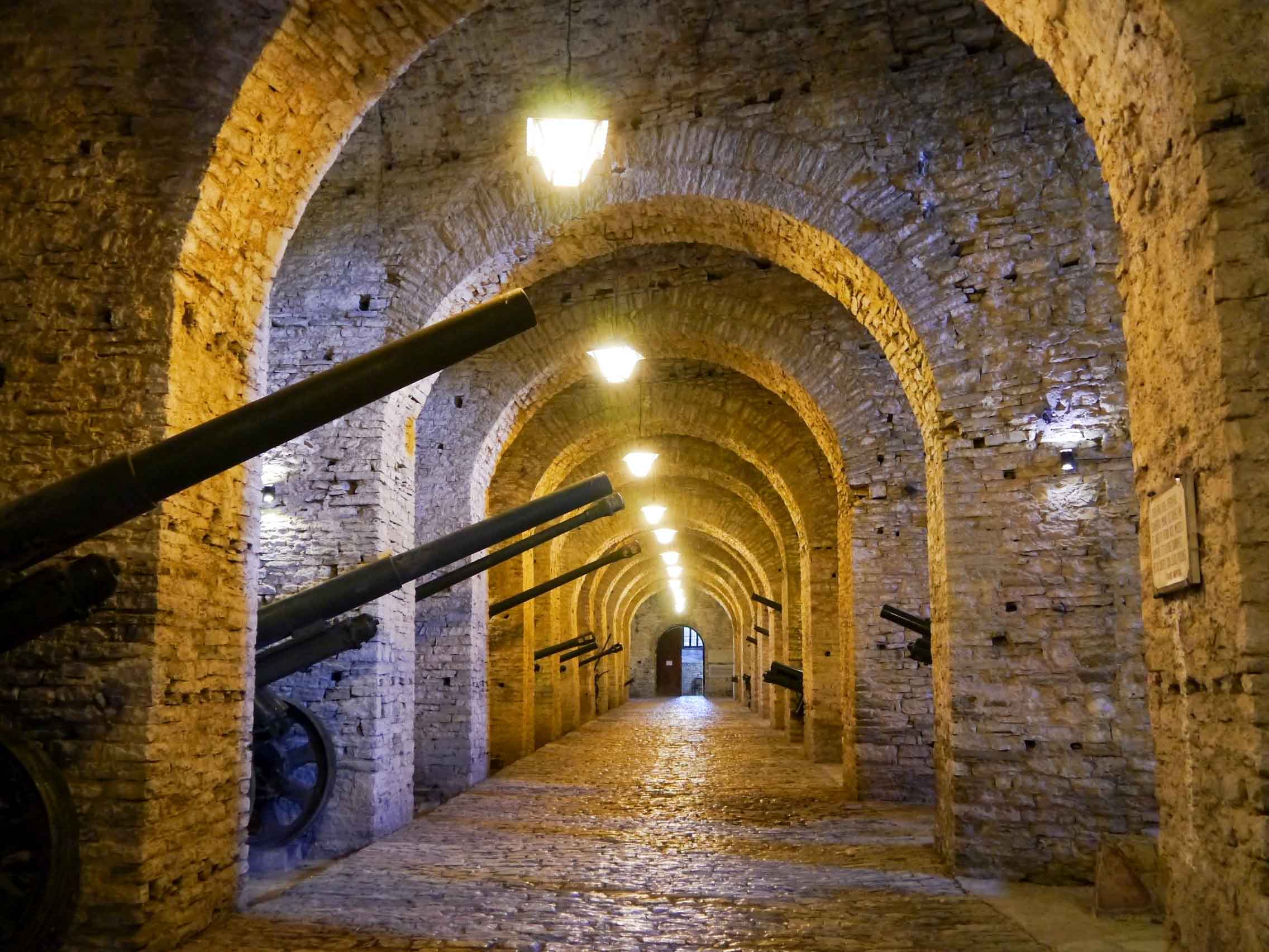 There are two museums housed within the castle walls. Muzeu i Gjirokastrës [Gjirokastër Museum] showcases the town and the region’s tumultuous past through well-presented information panels in Albanian and English. However, there are not many actual artifacts on display. Muzeu i Armëve [Museum of Armaments], opened in 1971, features a diverse collection of weapons ranging from prehistoric times to the Second World War. The museum includes a dedicated section that showcases the Albanian Partisans’ heroic struggle against the Italian and German occupation forces from 1939 to 1944. The Great Gallery is particularly impressive, featuring artillery pieces captured from the Italians and Germans during the Second World War, alongside examples from the Royal Albanian Army. In one of the niches of this gallery, visitors can also see a small Italian light tank built by Fiat. Additionally, the museum features an intriguing exhibit, a two-seater aircraft belonging to the United States Air Force, which was forced to land at Rinas Airport, near Tiranë in December 1957 due to technical problems or the ingenuity of the Albanian air defense forces. Anyway, the captured plane is a testament to the Communist regime’s triumph over the ‘imperialist’ Western powers.