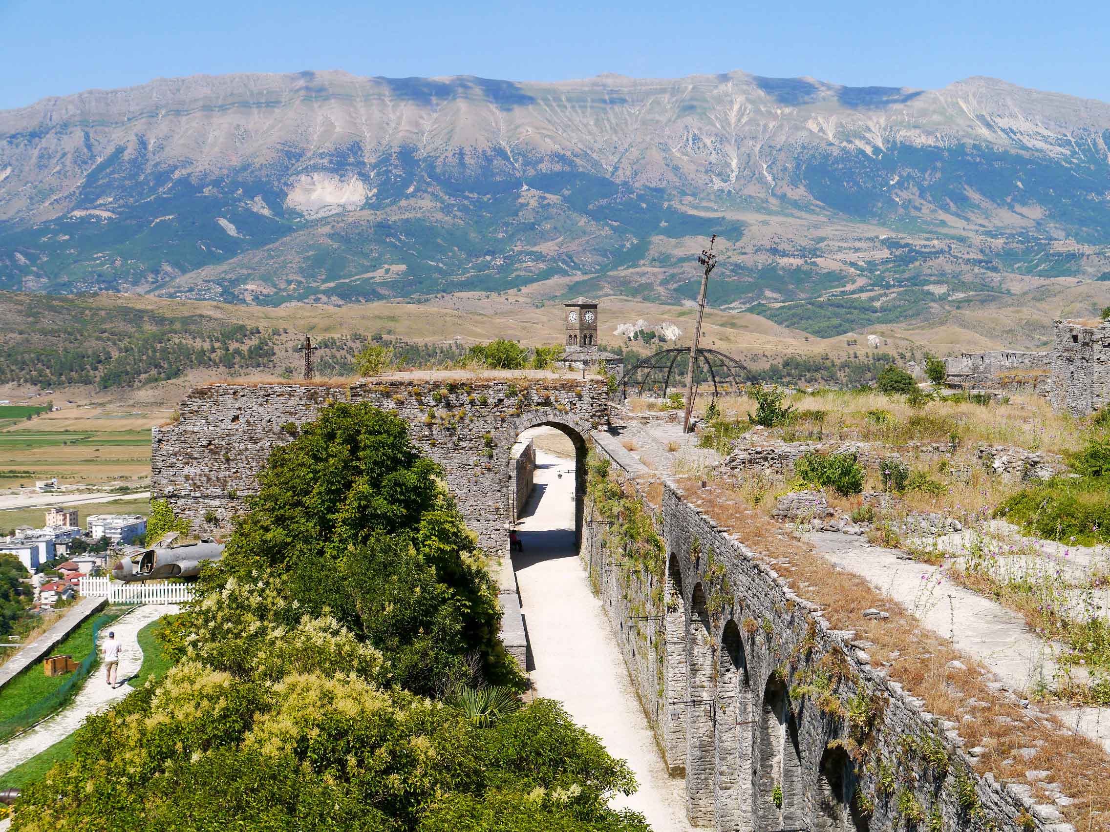 The initial fortification was constructed by the Despots of Epirus in the 12th century, who established the basic towered structure of the castle. However, it was after the Ottoman conquest that the castle was extensively improved, with the most significant changes made around 1490 by Sultan Beyazid II (reign: 1481-1512). In the early 19th century, Ottoman ruler Ali Pashë Tepelena made further enhancements, including fortifying the full area of the cliffs, building an aqueduct to bring water to the castle from the surrounding mountains, and adding the clock tower on the eastern side. Ali Pashë (in office: 1788-1822) was a prominent Ottoman Albanian ruler, known for his military and political power, as well as his patronage of the arts and architecture. During the Ottoman occupation, Gjirokastër played a significant role in the conversion to Islam and became a major center for Bektashi Sufism, a liberal branch of Islam. A reconstructed Bektashi Turbe [tomb] can be found tucked away within the walls of the castle for visitors to explore.