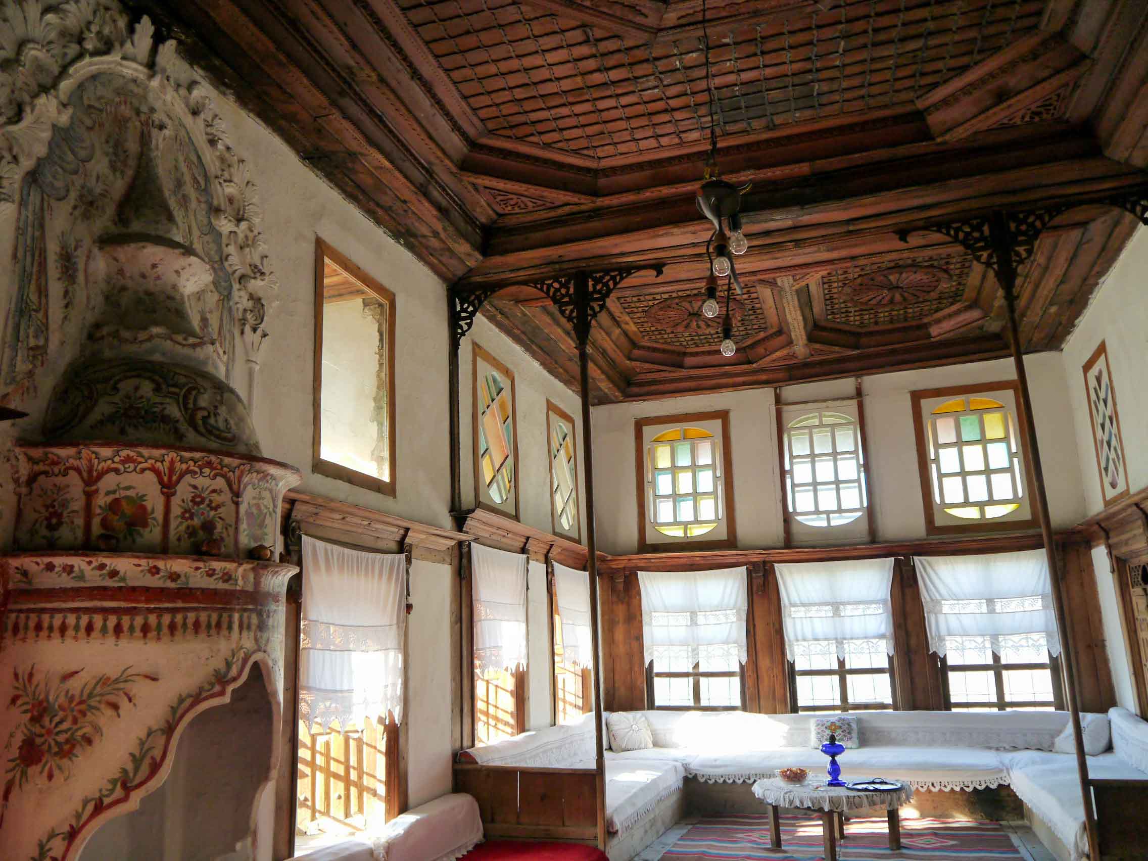 The tower houses all follow a similar layout, with a secure stone lower floor without windows and a wooden gallery on the upper floors. The ground floor usually serves as animal pens, storage rooms, kitchen, and cistern, while the upper floors are used for living quarters and reception rooms for extended families. The grandest room in these houses, known as the Chamber of Men, is usually located on the first floor and features frescoed walls, intricately carved wooden ceilings, and ornate fireplaces.
