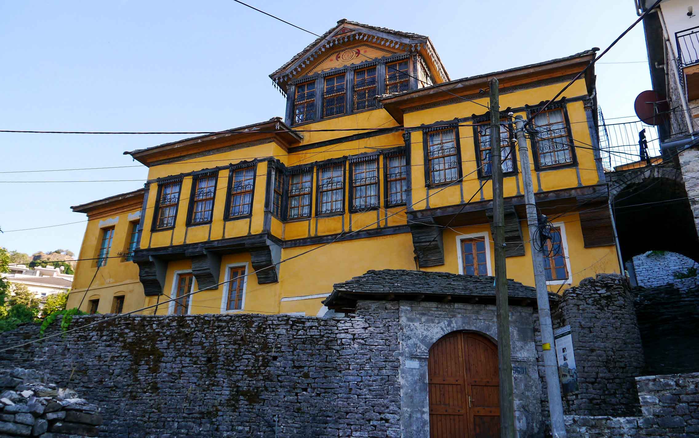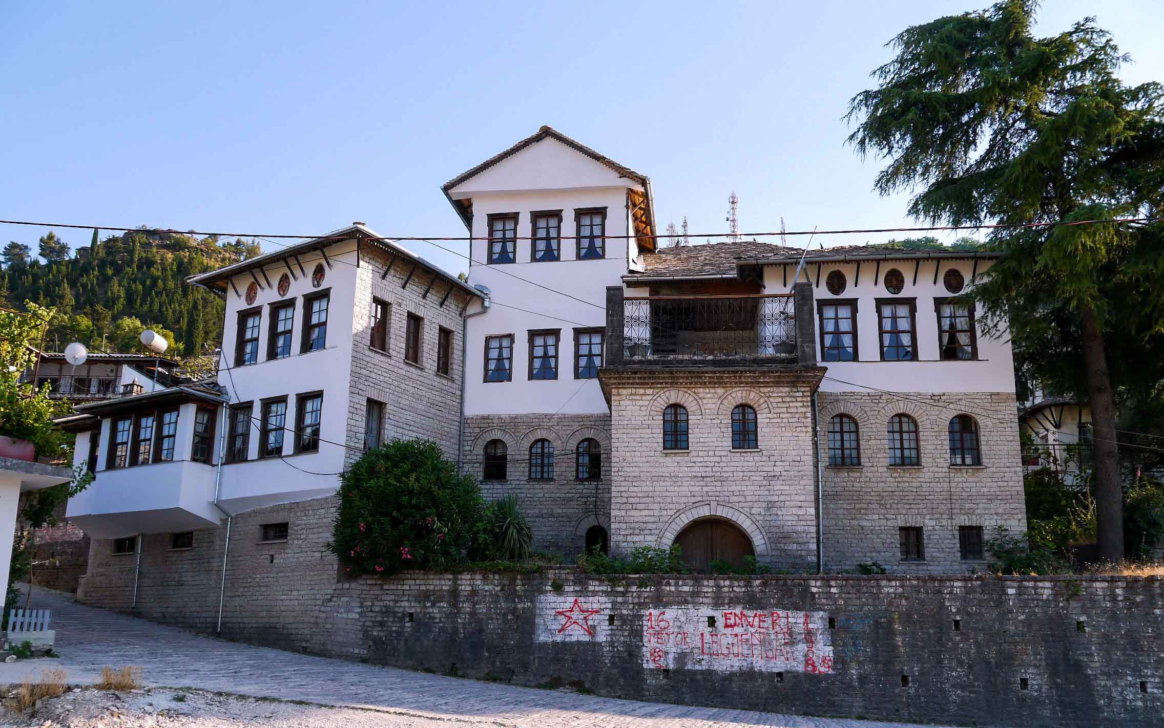 The Muzeu Etnografik [Ethnographic Museum] stands on the site where the former home of the communist leader Enver Hoxha once stood. The current building, in the style of a traditional Gjirokastër home, was constructed in 1944 after the original house was destroyed by fire. It became a museum in 1966 and contained displays relating to the communist leader and the martyrs of war. After the fall of communism in 1991, the museum was transformed into an ethnographic museum. The present museum offers a rich insight into the lifestyle of the upper classes during the 19th and 20th centuries. The museum’s displays include traditional folk costumes, cultural artifacts, and local household items. The museum does not contain anything related to Enver Hoxha or the communist regime.