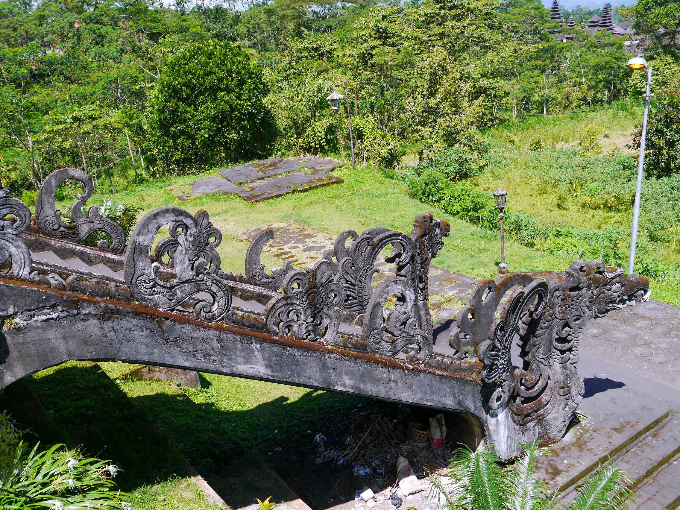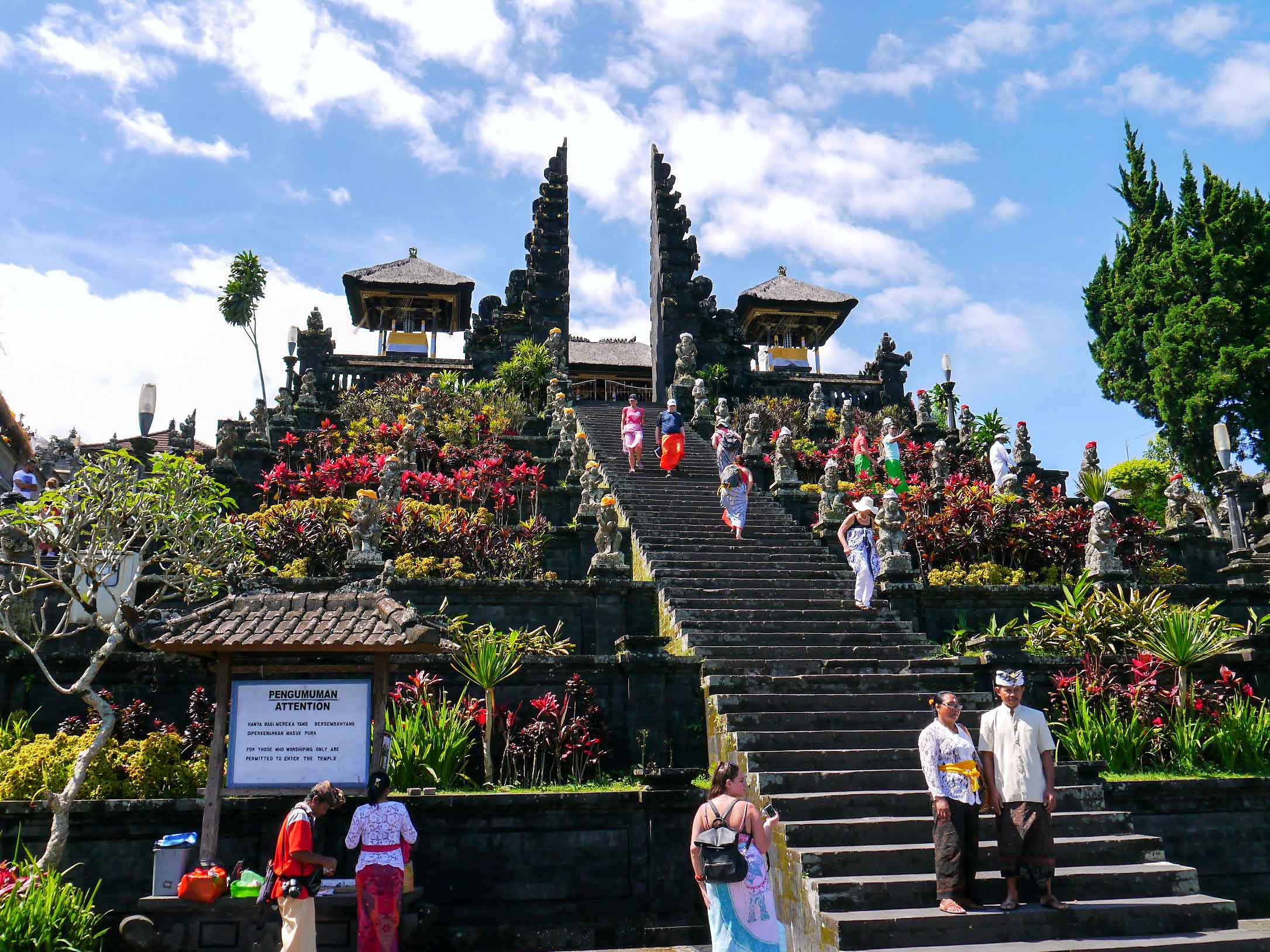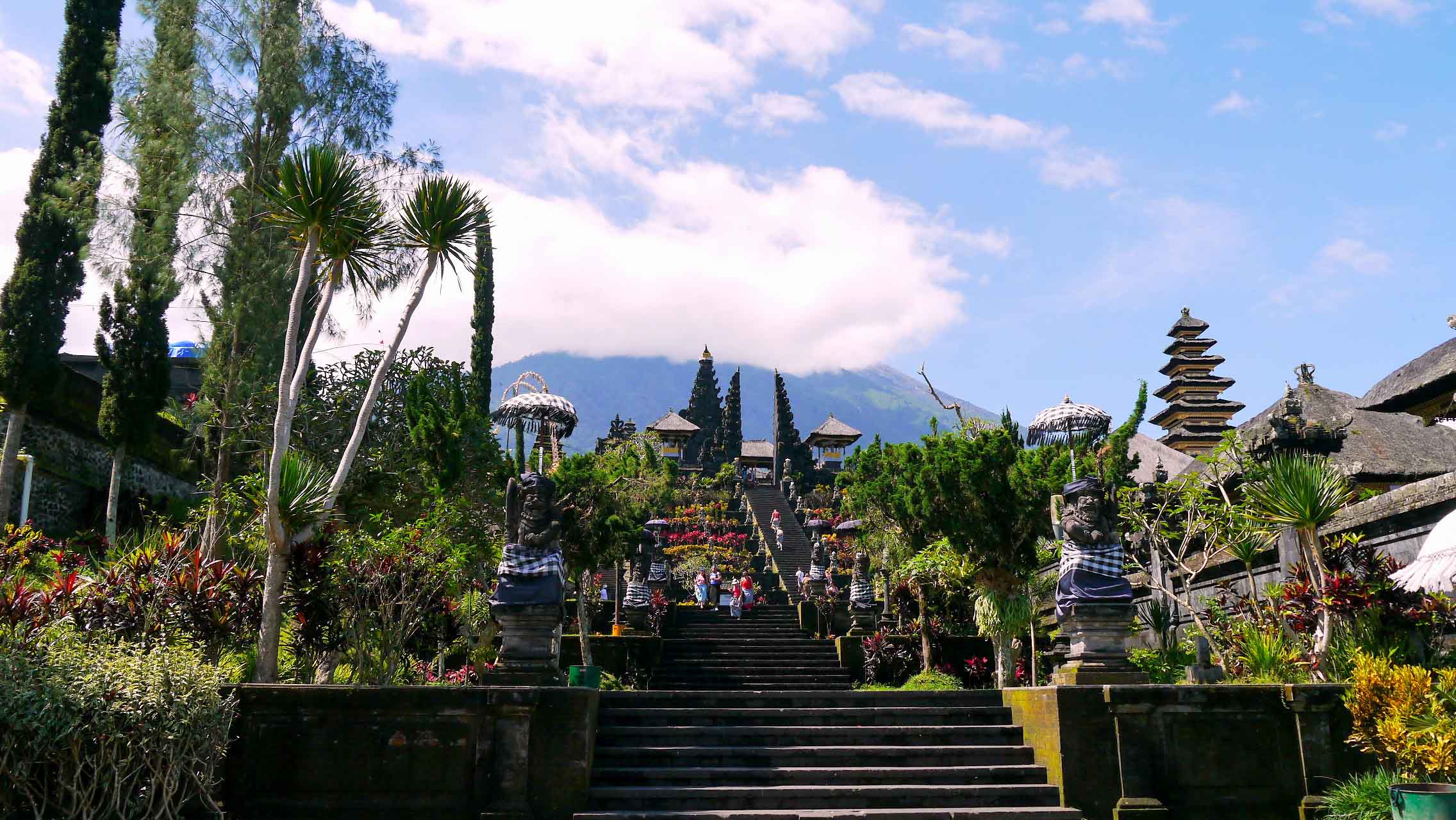 Behind Pura Penataran Agung, it is worth climbing further up the mountain towards Pura Gelap [Temple of Lightning and Thunder]. This temple offers an impressive sight with its majestic dragon staircase that reaches skyward. Moreover, it offers awe-inspiring vistas of the temple complex and its striking surroundings.