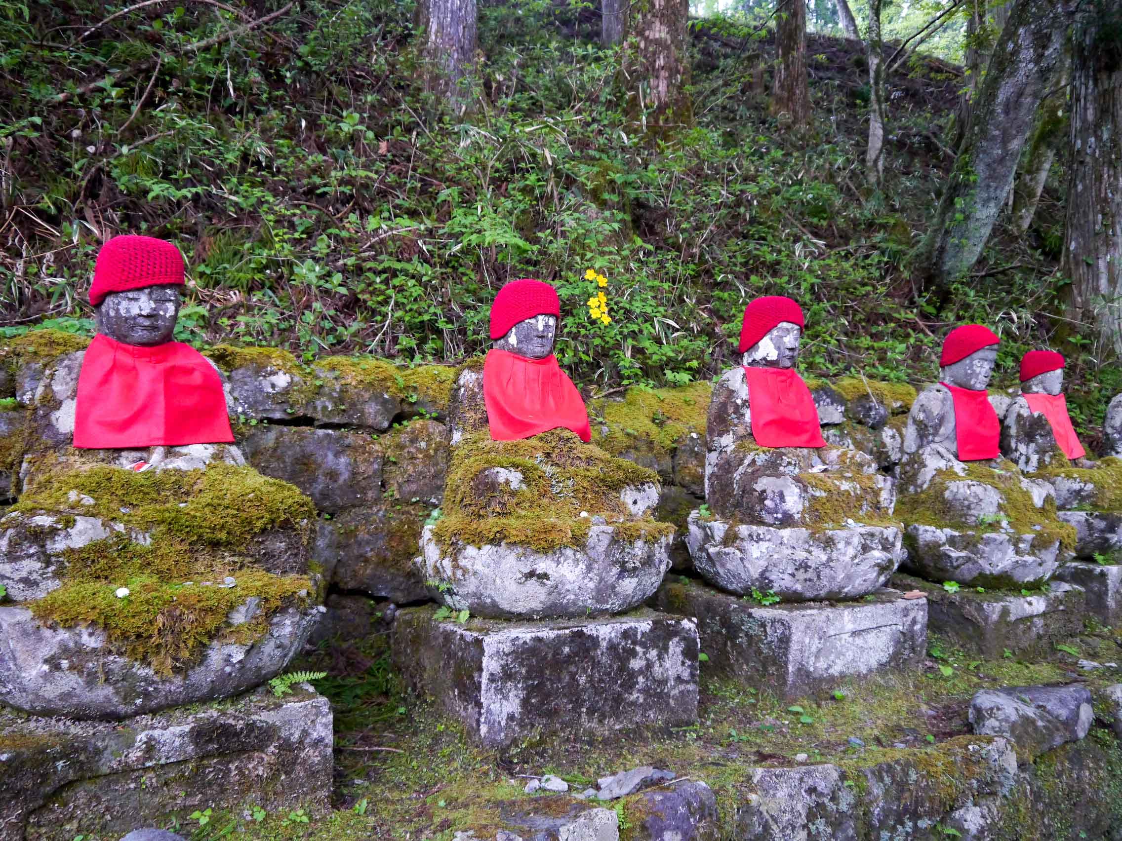 Jizō holds a special place as one of Japan’s cherished deities, regarded as the Bodhisattva who watches over travelers lost souls, and serves as the guardian of children. Adorned with red cloth bibs and crocheted caps, Jizō statues are an embodiment of Japanese folk belief, where the color red symbolizes the expulsion of demons and illness. While a few statues have lost their heads, they are carefully placed alongside their Jizō bodies. Despite this, the seemingly boundless line of statues creates an enchanting and captivating spectacle.