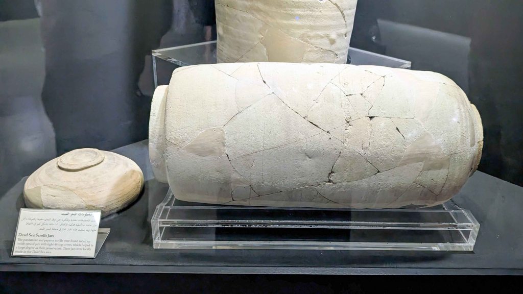 Equally fascinating is the museum’s rare exhibit of the Copper Scroll – one of the most enigmatic texts among the Dead Sea Scrolls, a collection of ancient Jewish manuscripts discovered over a ten-year period between 1946 and 1956 in the Qumran Caves along the northwestern shore of the Dead Sea. Unlike the majority of scrolls – typically written on leather or papyrus and focused on religious content – the Copper Scroll was engraved on thin metal sheets and contains no theological material. Dating to the 1st century AD and written in a variant of Mishnaic Hebrew, it lists over sixty locations purportedly concealing vast hoards of gold, silver, and temple treasures across the Near East. Some interpretations estimate these hidden riches total more than 160 tons. However, the wording of the scroll – inscribed on a strip just 1 millimeter thick and 2.4 meters long – is vague and geographically unspecific, leaving scholars divided over its meaning and credibility. Nonetheless, it has fueled decades of academic debate, treasure hunts, and conspiracy theories. Due to severe oxidation, archaeologists had to cut the scroll into 23 strips to read its contents, making it one of the most physically unique ancient texts ever recovered. To this day, none of the caches described in the Copper Scroll have been conclusively located, adding an enduring aura of mystery to this already extraordinary artifact.