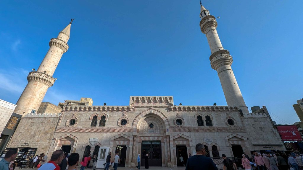 Dominating the area is the Grand Hussein Mosque, a focal point of religious life in Amman. Built in 1924 on the foundations of a 7th-century Umayyad mosque, it remains one of the city’s most important and well-attended places of worship. On Fridays, the mosque becomes the beating heart of the district, with surrounding streets filled with worshippers, merchants, and street vendors in a dynamic display of faith and commerce.