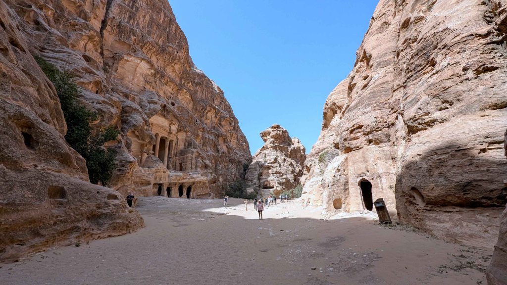 Today, Petra is one of the most visited archaeological sites in the world. Designated a UNESCO World Heritage Site in 1985, it is also a protected archaeological park and one of the New Seven Wonders of the World, attracting visitors from across the globe to its windswept valleys, crimson cliffs, and timeless monuments. While Petra’s most iconic landmarks – such as the Siq, Al-Khazneh [the Treasury], and the Royal Tombs – can be visited on a half-day tour, those who choose to linger are rewarded with a much deeper and more intimate experience. A full day allows for a comprehensive journey along Petra’s main trail, stretching from the Visitor Center to the sacred precinct of Qasr al-Bint [Palace of the Pharaoh’s Daughter], with ample time to explore the Royal Tombs and climb to either Ad-Deir [the Monastery] or the High Place of Sacrifice. With two or more days, the experience becomes truly immersive. Visitors can tackle both major hikes at a more relaxed pace, uncover lesser-known trails, and venture off the beaten path to discover hidden tombs, unexcavated ruins, and panoramic views rarely seen by day-trippers. An extended stay also provides the opportunity to visit nearby Siq al-Barid, commonly known as Little Petra – a smaller, more intimate Nabataean site that likely served as a caravanserai, offering lodging and provisions to traders traveling along the incense and spice routes. Not to be missed is Petra by Night, a rare and evocative way to experience the ancient Nabataean capital as it may have appeared to travelers centuries ago – bathed in candlelight beneath the quiet stillness of the desert night.