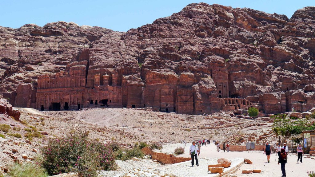 A short detour to the right, where the Outer Siq opens onto Petra’s central plain, leads to the Royal Tombs – a dramatic row of monumental façades carved into the towering cliffs at the base of Jebel al-Khubtha. Viewed from a distance, these structures create a breathtaking panorama, their grand scale and intricate details silhouetted against the sheer rock face. Believed to have been built for high-ranking individuals – possibly members of Petra’s royal family – these tombs represent some of the most architecturally ambitious and artistically refined monuments in the city. In the absence of inscriptions identifying their original occupants, the tombs have been named based on distinctive architectural features or visual characteristics. The most prominent among them are the Urn Tomb, the Silk Tomb, the Corinthian Tomb, and the Palace Tomb.
