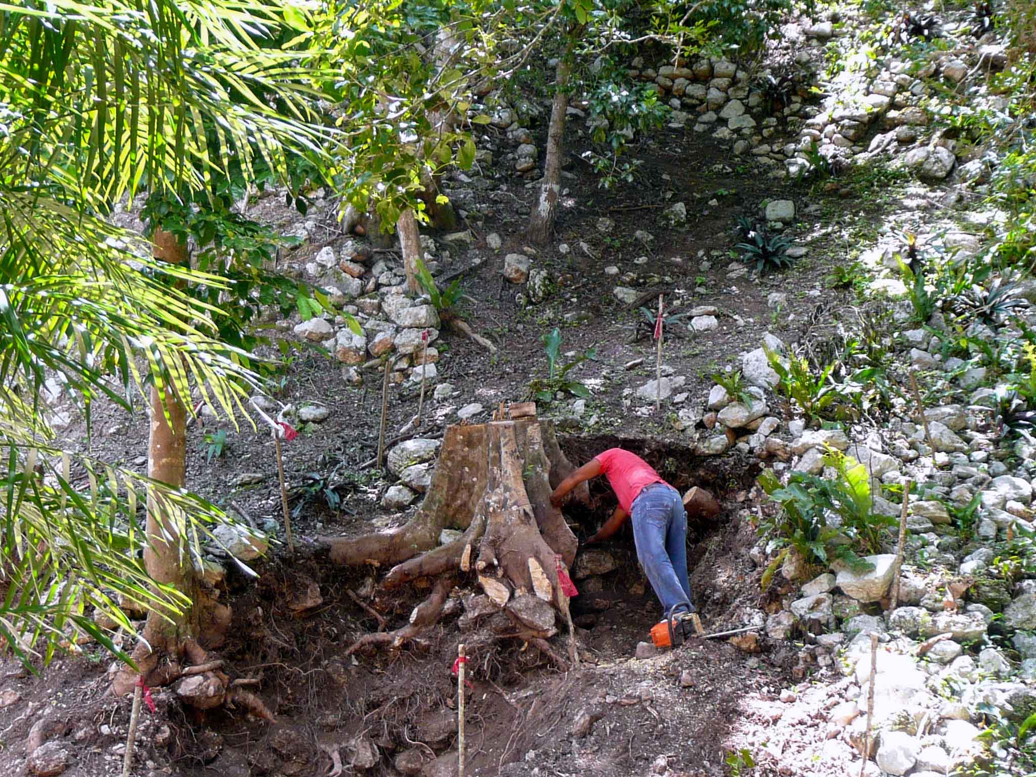 The Macanxoc Group is accessible via by Sacbé 9, which is the widest road in Cobá, emphasizing the importance of this area. Situated on a vast platform, overgrown with vegetation, a complex of structures is believed to be the main ceremonial center of the site. Notably, the complex is renowned for its collection of eight stelae. Among them, five portray a female ruler who assumed the throne between 640 and 682, while the remaining stelae depict male rulers from the 7th century. According to local legend, the stelae represent ancient kings who turn to stone during the day and come to life at night.