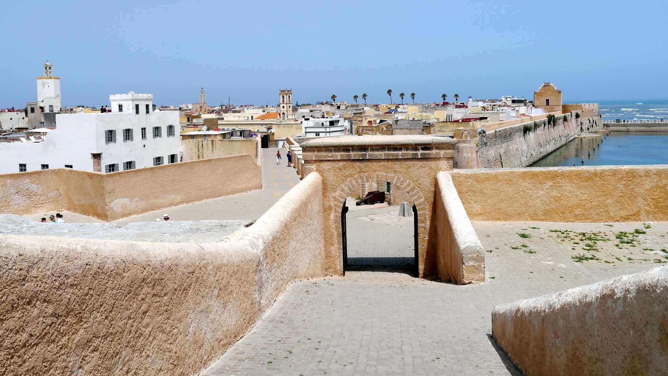 The walls of the old town were originally fortified with five bastions, but only four of them were rebuilt after the retreating Portuguese destroyed the town. The Bastion of St Sébastien, which once served as the seat of the Inquisition’s tribunal and prison, stands as a reminder of its history. Additionally, as a tribute to the Jewish community that once thrived here, the Star of David symbol can still be seen on the façade of the nearby ruined synagogue. The Bastion of l’Ange offers great views of the old town, the harbor and the ocean.
