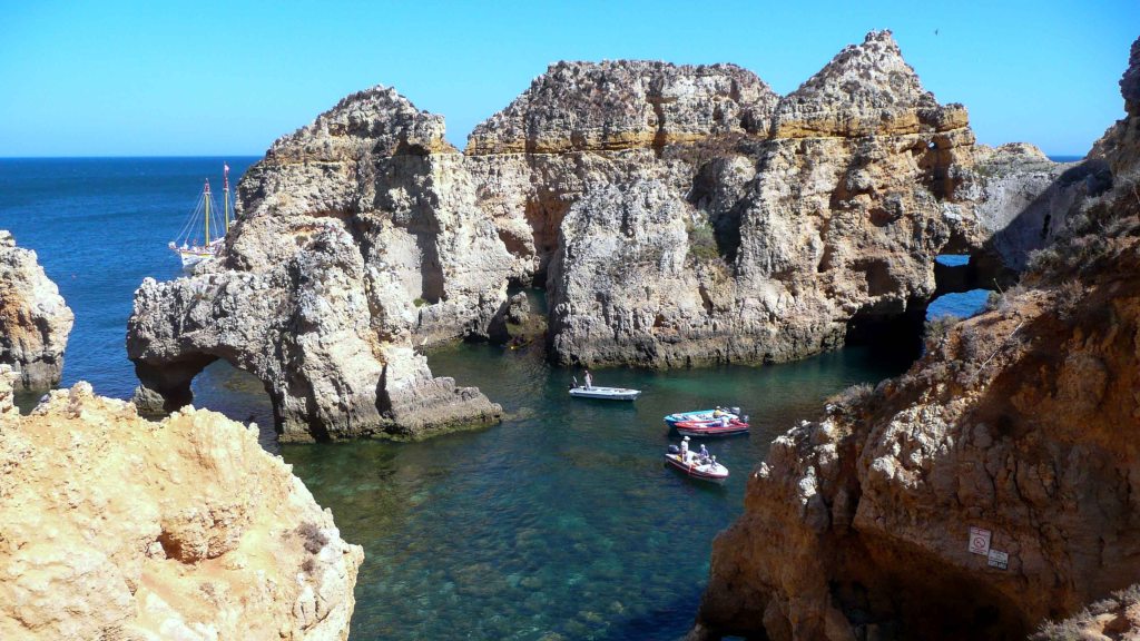 Algarve, with its dramatic limestone coastline, is a popular tourist destination. It is also the historic center of the Portuguese Age of Discovery.