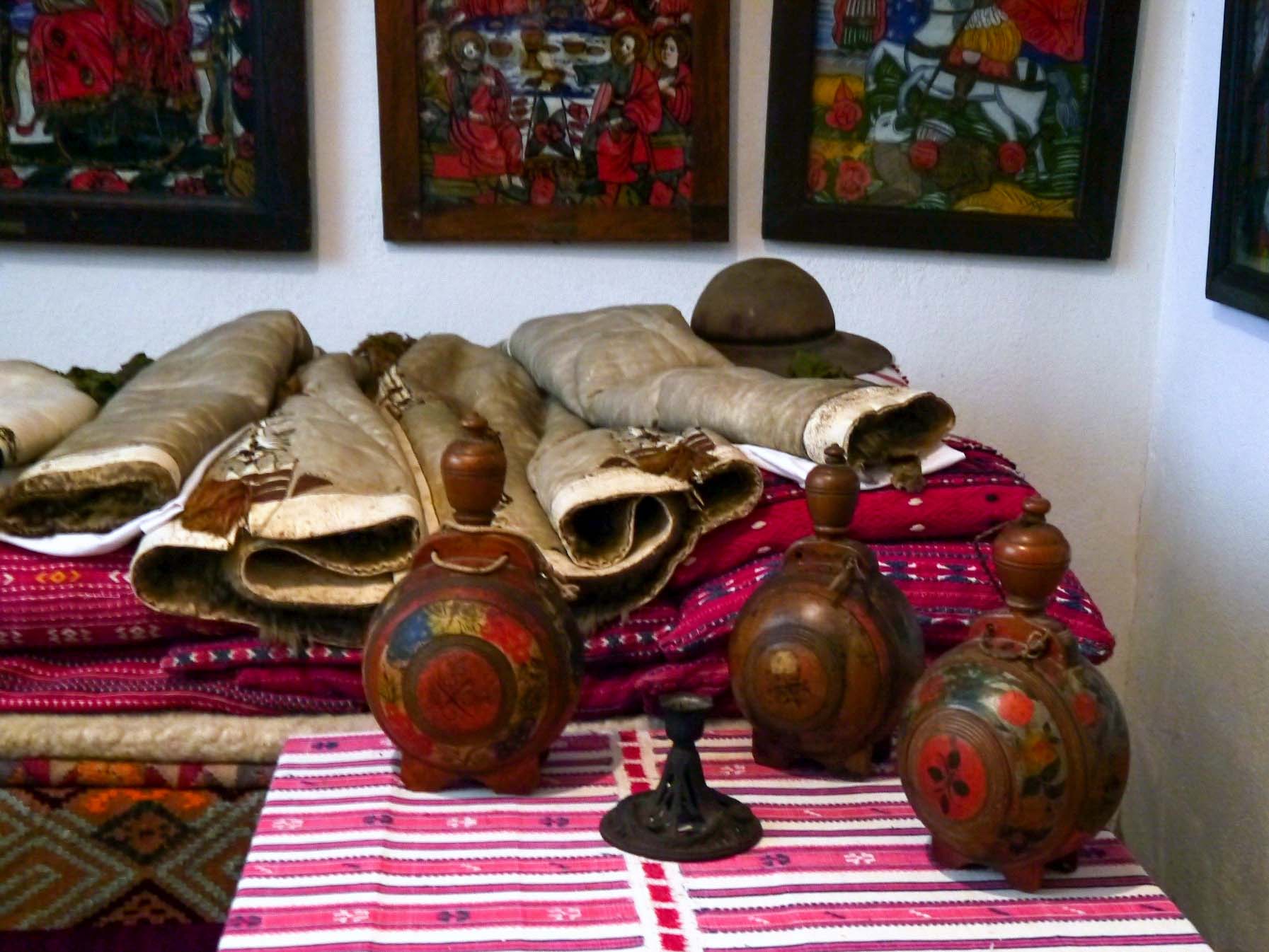 In addition to the icons painted on glass, the museum also houses significant ancient books, including the 16th-century Slavic liturgical text, along with examples of local handicrafts like ceramic vases, embroidered textiles, and antique furniture.