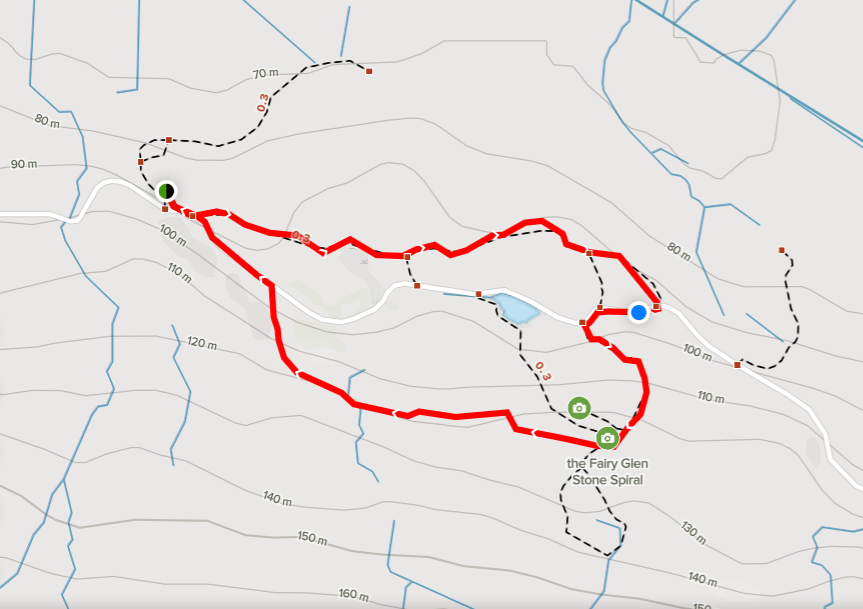 The Fairy Glenn Walk passes through an enchanting landscape adorned with grassy, cone-shaped hills interspersed with picturesque ponds and embellished with cascading waterfalls. The Fairy Glen was formed through a sequence of landslides, albeit on a smaller scale compared to the massive landslides that shaped the Storr and the Quiraing. Local folklore spins tales of fairies who allegedly created this petite realm, dwelling within its numerous concealed crevices.